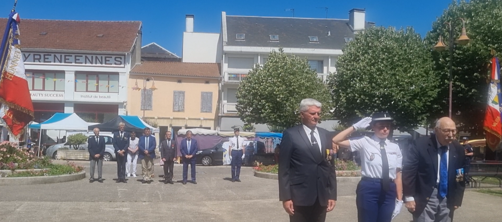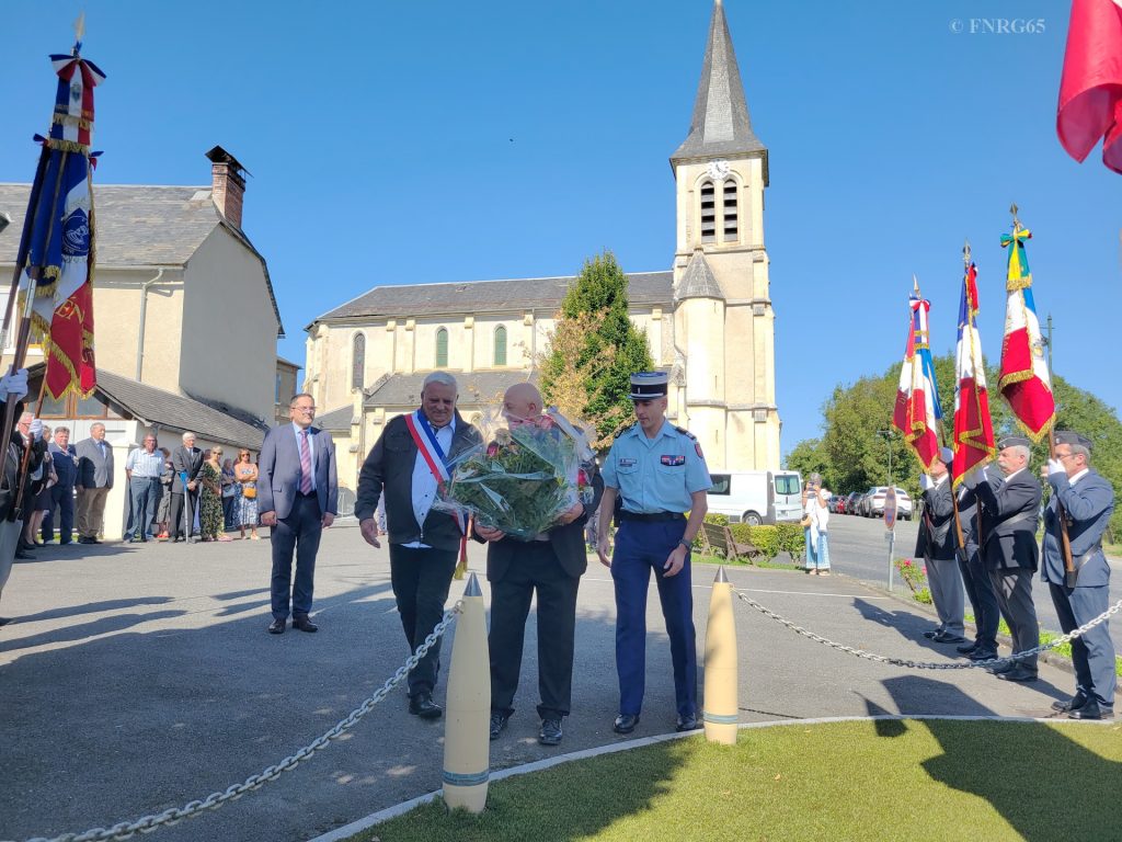 La fraicheur de la température nous a rappelé que nous nous approchons de l’automne et que la chaine des Pyrénées est toute proche. Cela ne nous a pas empêché d’assister à une très belle cérémonie présidée par le préfet du 65, à laquelle ont assisté les autorités militaires, politiques et administratives du département. Et, bien entendu, la F.N.R.G. représentée par Kiki, Lison, Patrice et Jean-Luc, était de la fête avec ses drapeaux.