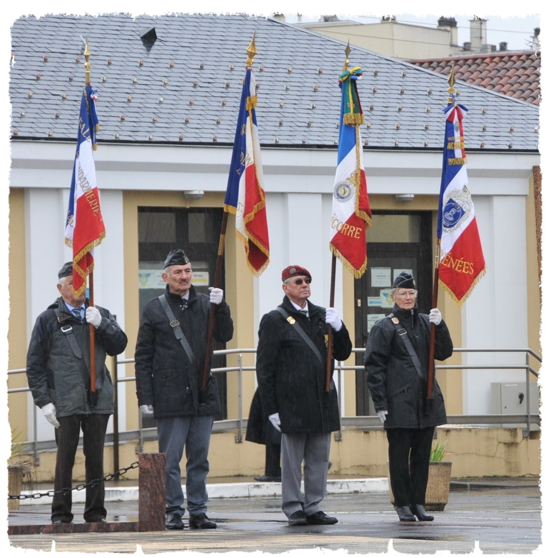 A 15 heures, sous une pluie battante, s’est déroulée la cérémonie d’hommage aux héros de la gendarmerie dans la cour de la caserne.  Cette manifestation était présidée par le colonel Hugo LOUIS, commandant le groupement de gendarmerie des Hautes-Pyrénées, avec la présence du préfet, des autorités civiles, militaires, des délégations de la garde civile et une vingtaine d’adhérents F.N.R.G. 14 adhérents de la section de Lannemezan étaient présents.