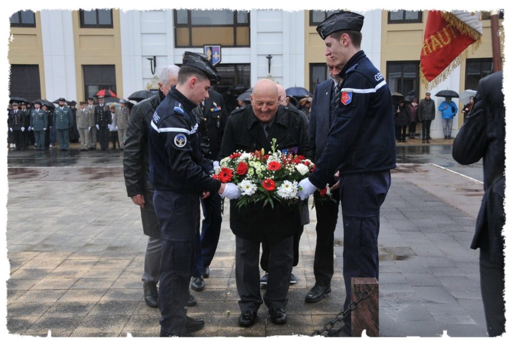 Lison, comme à son habitude portait le drapeau de la F.D.R.G. Elle était accompagnée de Jean-Paul. Kiki a procédé avec 4 autres associations, à un dépôt de gerbe. Durant cette cérémonie, un adhérent de la section, Thierry AUBOURG, a été mis à l’honneur puisqu’il a reçu des mains du préfet, la médaille de bronze de la sécurité intérieure pour avoir secouru une dame ayant chuté dans un ravin et se trouvant en état d’hypothermie.